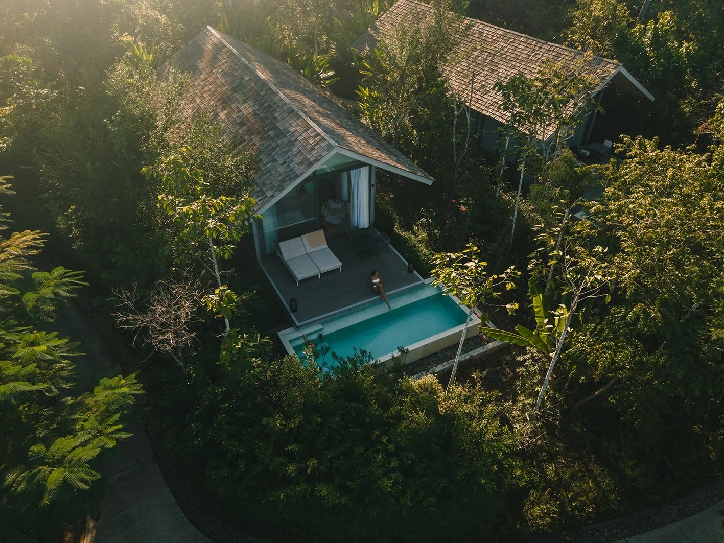 This 1-bedroom reserve pool villa features a private pool and an elegant outdoor pavilion with surrounded by beautiful manicured gardens.
